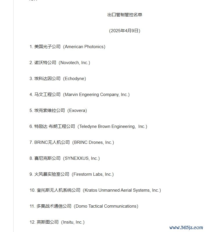 商务部:将12家美国实体列入出口管制管控名单商务部:将12家美国实体列入出口管制管控名单